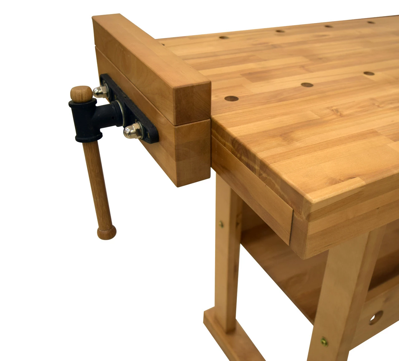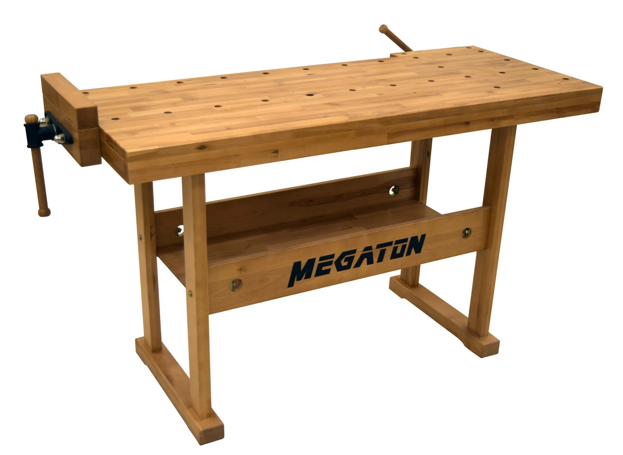 This great quality birch top workbench is perfect fit for the amateur to experienced wood worker. The rugged construction consists of a solid 1” thick 54″ X 21″ birch laminate table top and wooden base for superior stability. Bench top is equipped with cast iron front vise and end vise with bench dogs for sturdy clamping of your workpiece. Table is also equipped with ¾” bench dog holes to accommodate bench dogs and other clamps like the BB103.
