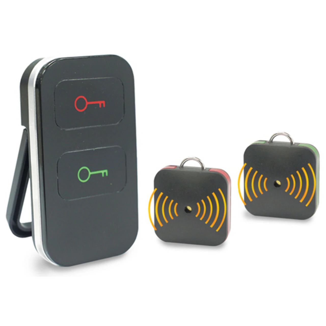Each kit comes complete with one transmitter and two receivers allowing you to use this with two different sets of keys.