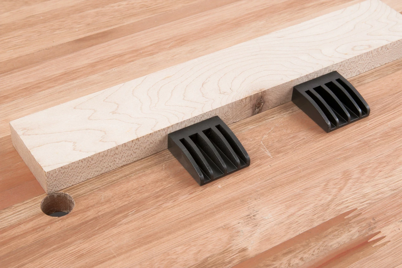 These Low Profile Bench Dogs will fit any standard ยพ” diameter bench dog hole. The low profile allows you to work with material as thin as ยฝ”. The durable yet economical plastic design are perfect for keeping your material stationary and secure while performing any sanding and routing operations on your workbench. The Low Profile Bench Dogs come in packages of 4.