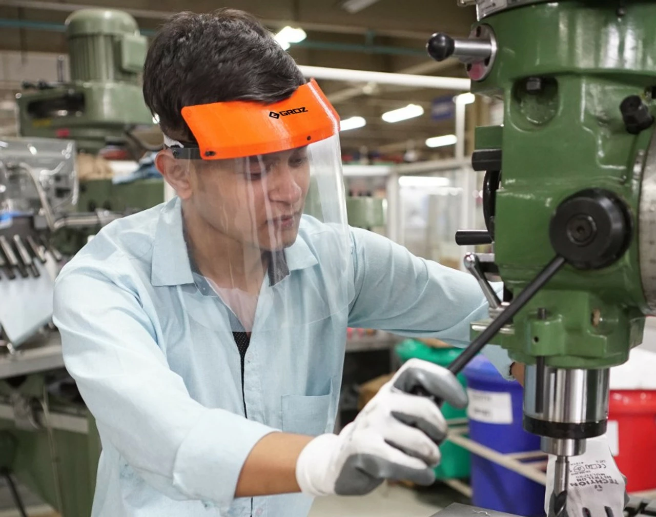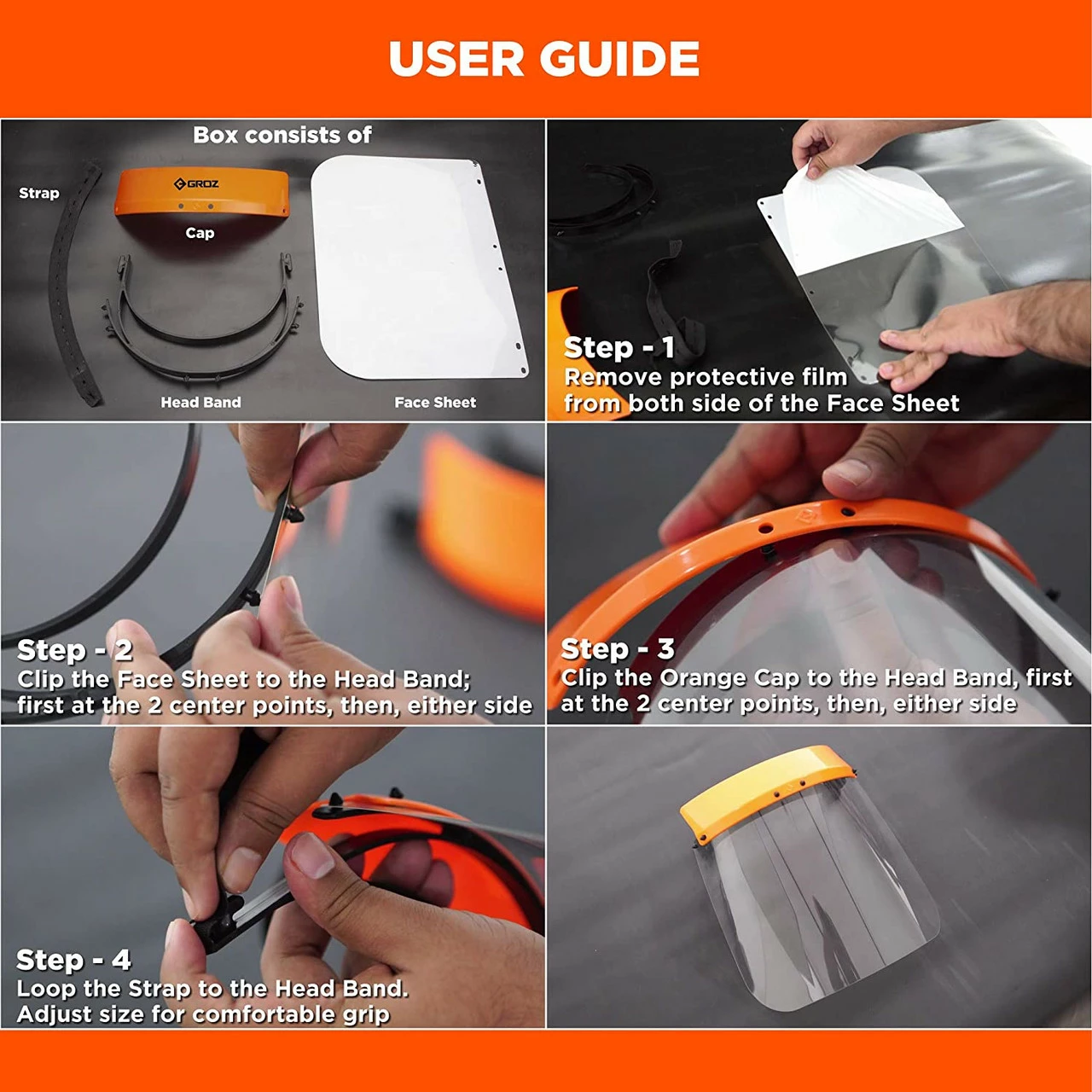 High-quality optically and distortion-free PET face visor & a Polypropylene Head Visor.