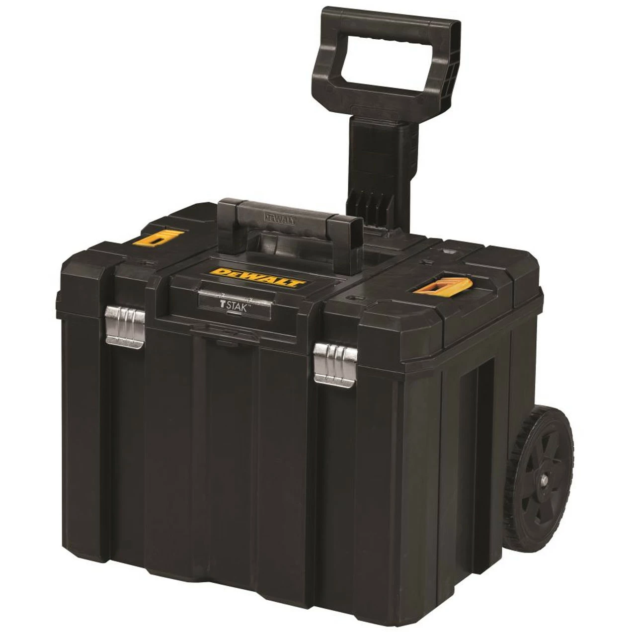 The DEWALTยฎ TSTAKยฎ Mobile Storage unit combines a large volume storage tool box with durable 7″ wheels. With rust-resistant metal latches, bi-material top handle and side latches that allow stacking all other TSTAK units on top, this is a great manoeuvrability solution.