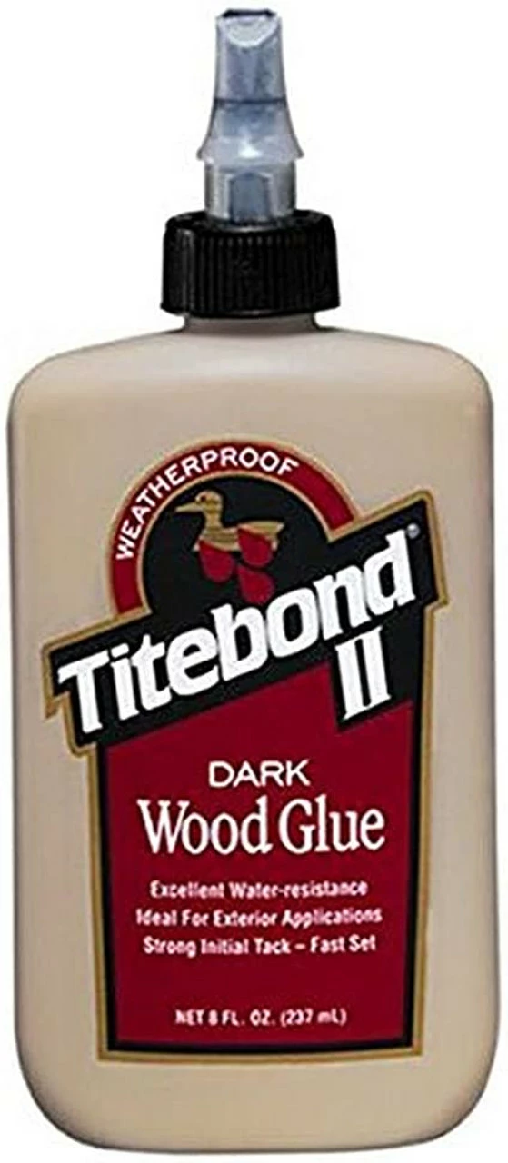 Titebond II Dark Wood Glue is a dyed-version of Titebond II Wood Glue. It provides a strong initial tack and fast speed of set to reduce clamp time. It also develops a bond stronger than the wood itself, offers excellent sandability and is unaffected by finishes. Titebond Dark can help any woodworker achieve professional-looking results. It is ideal for wood, hardboard, particleboard, leather, cloth and most other porous materials. Titebond Dark is easy to use, non-toxic and cleans up with water.